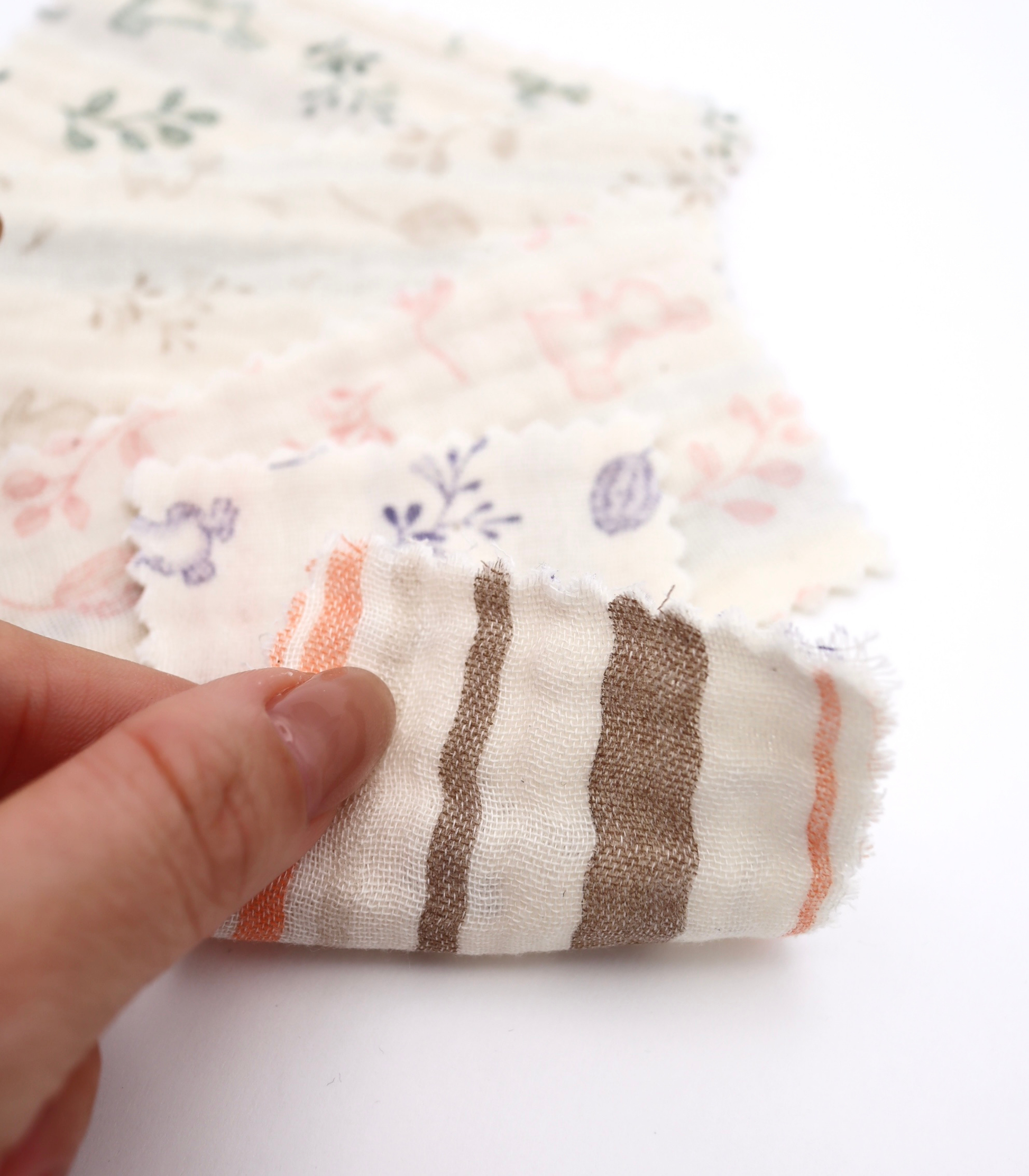 【25SS-270】リバーシブルうさぎ×マルチストライププリント接結4重ガーゼ /0.5yあたり=~1210円