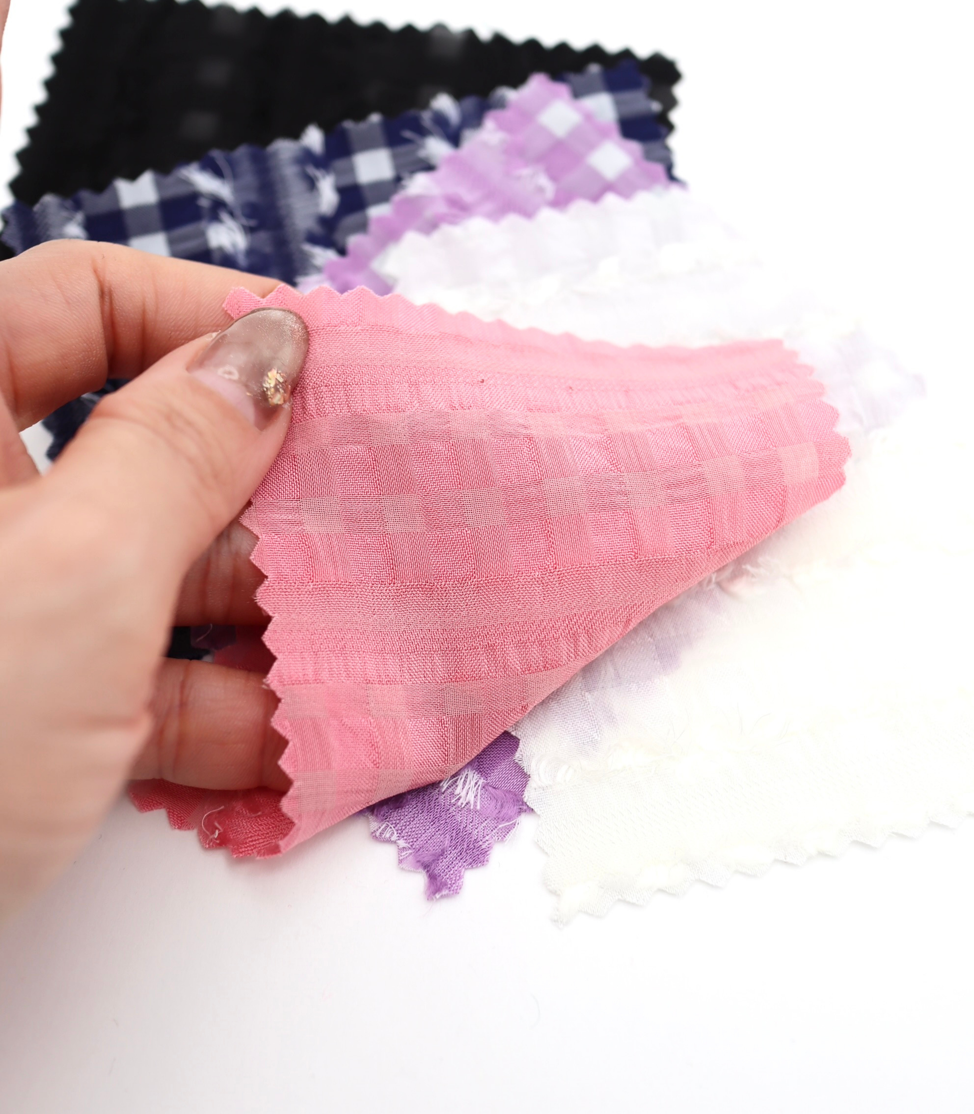 【25SS-322】シアーフリンジジャガード先染めギンガムチェックサッカー /0.5yあたり=~ 685円