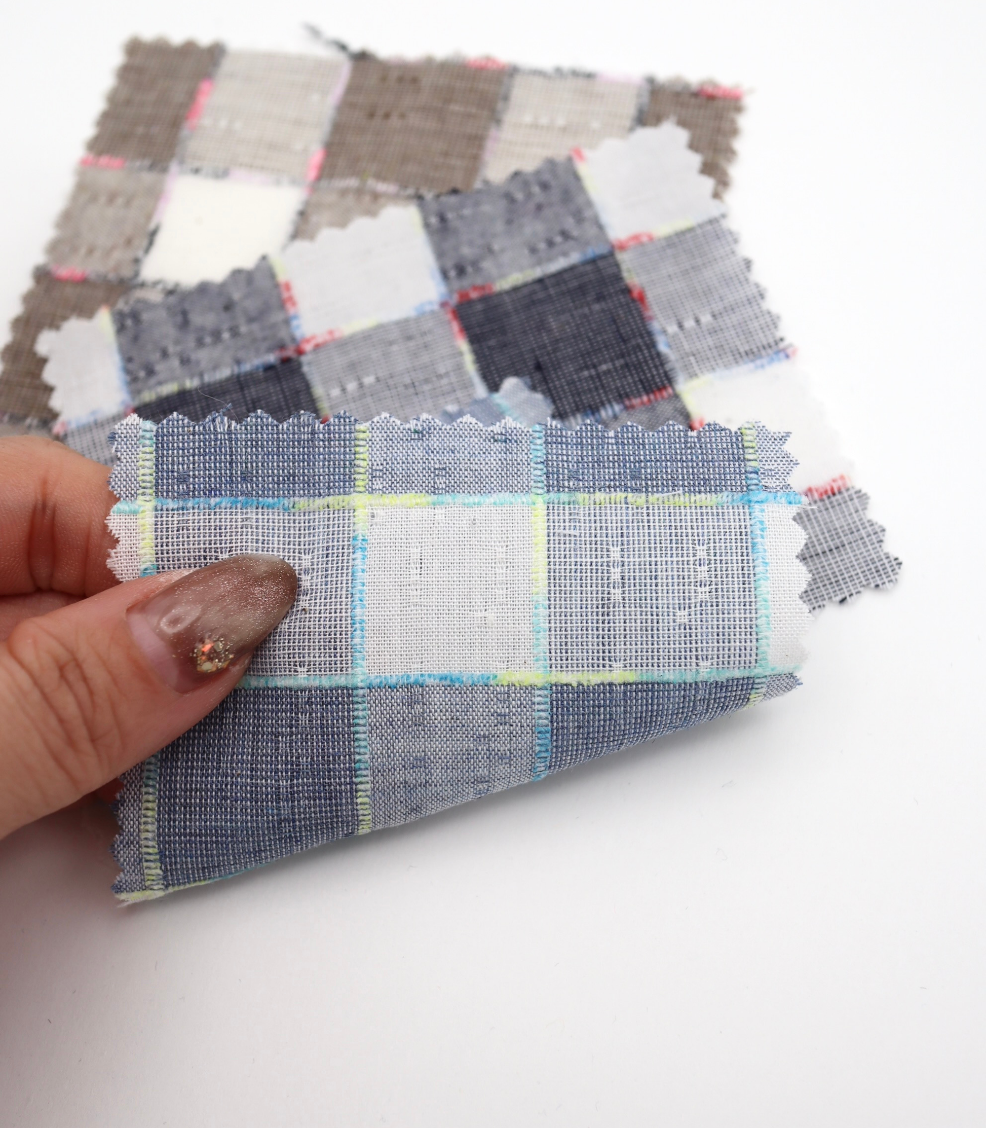 【25SS-081】ぽこぽこ格子ギャザーステッチキルティングパウダータッチタフタ /0.5yあたり = ~1290円
