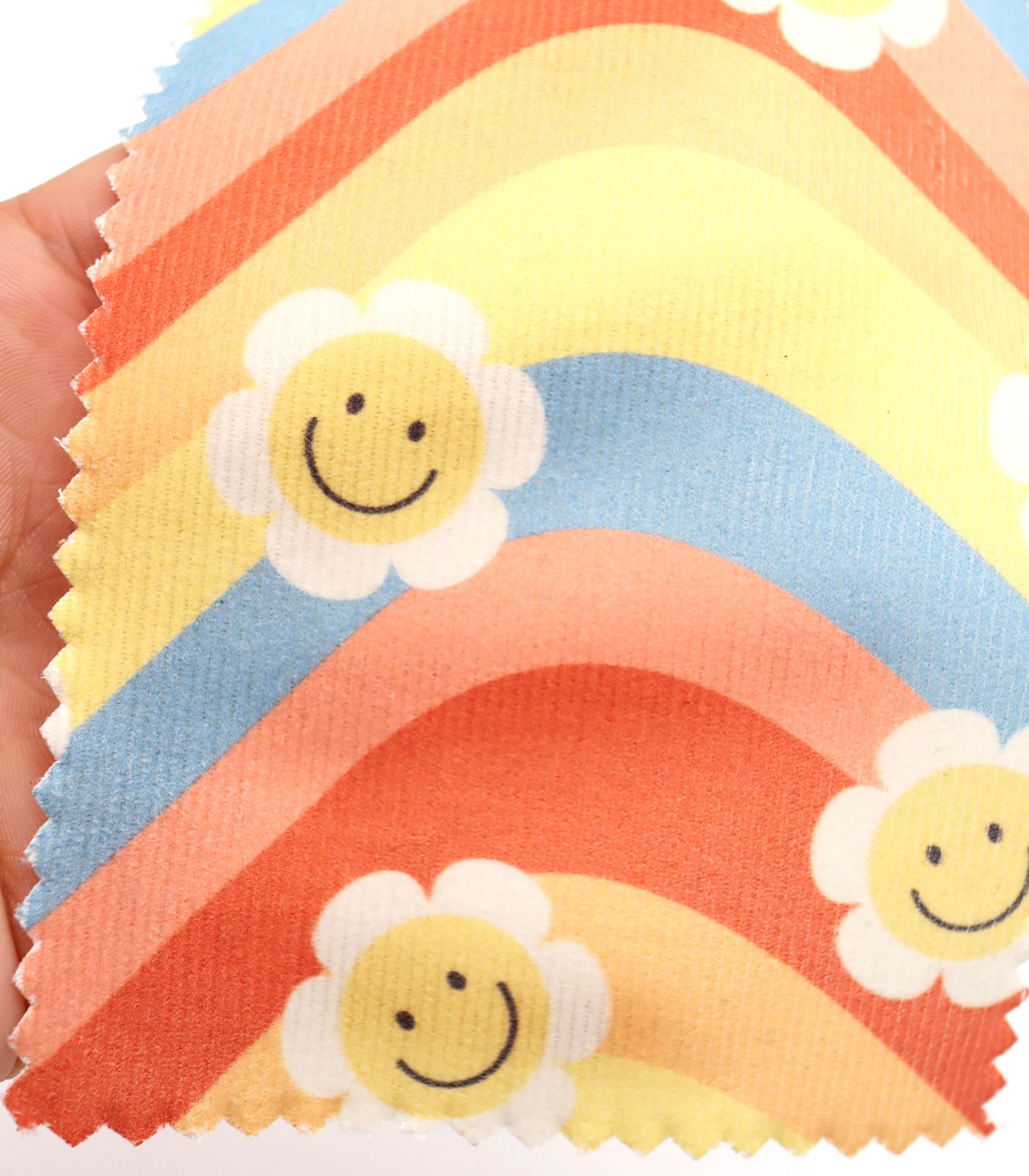 【25SS-119】レインボー×レトロフラワープリントコーデュロイ /0.5yあたり=~880円