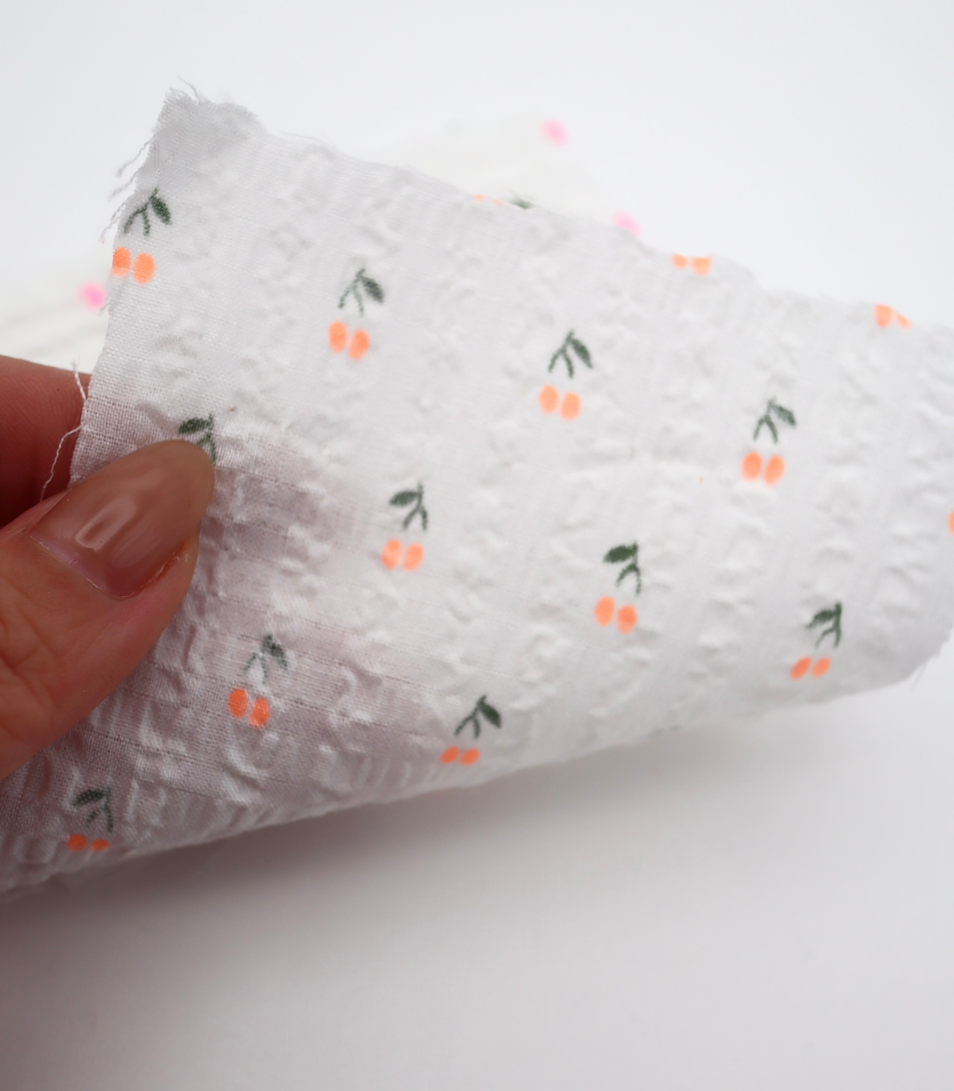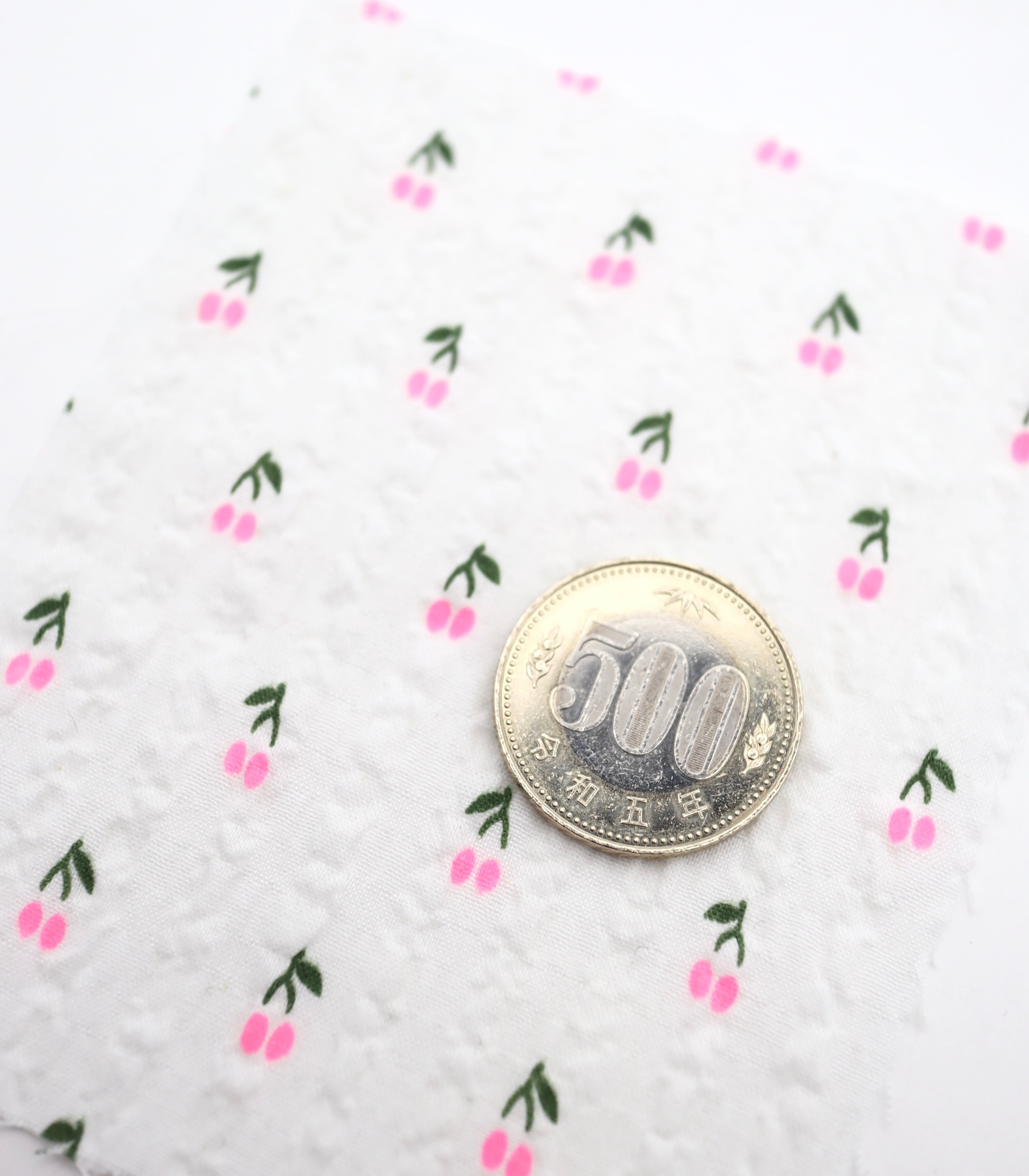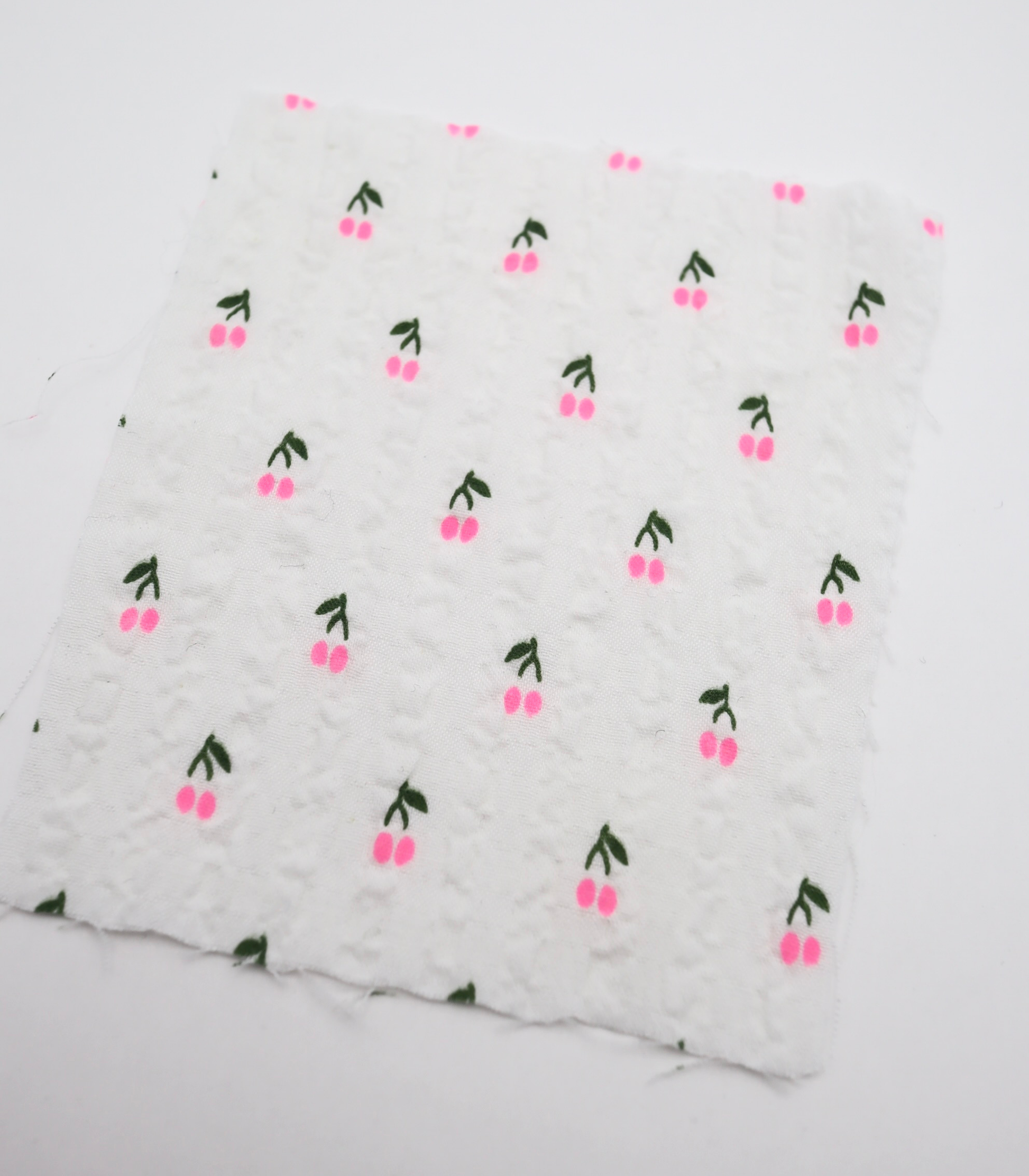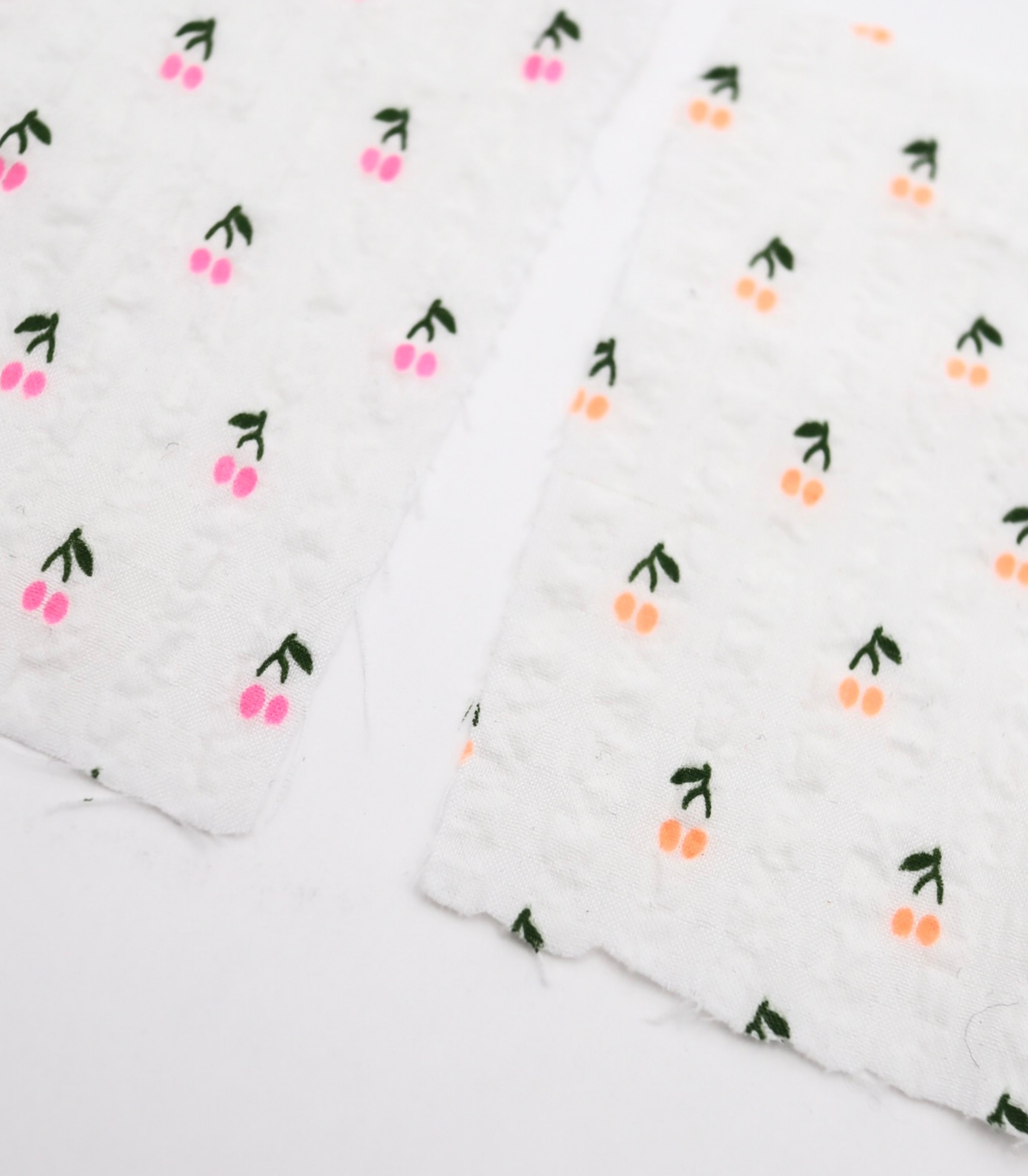 【25SS-435】蛍光チェリープリントサッカー /0.5yあたり=~ 630円