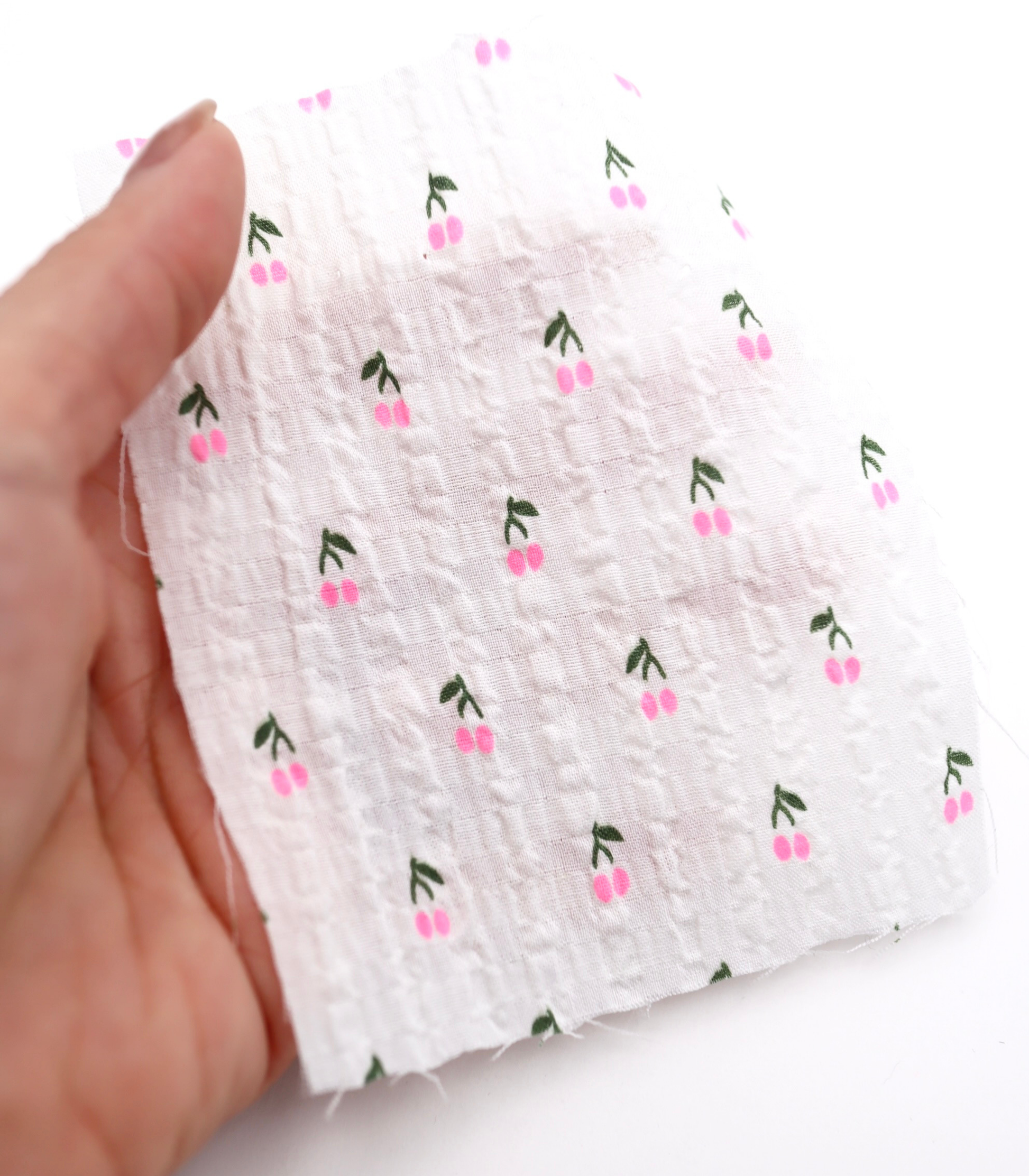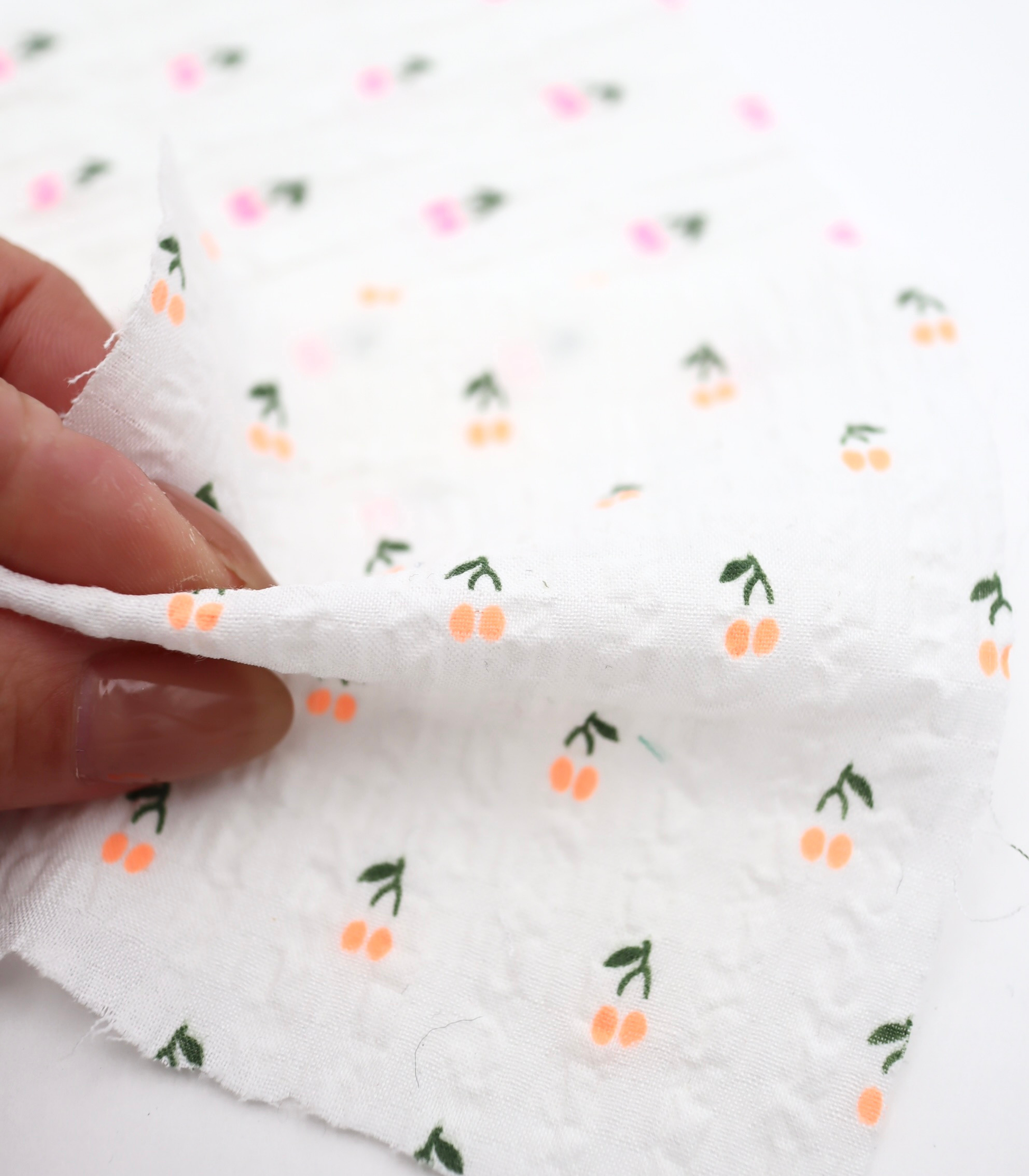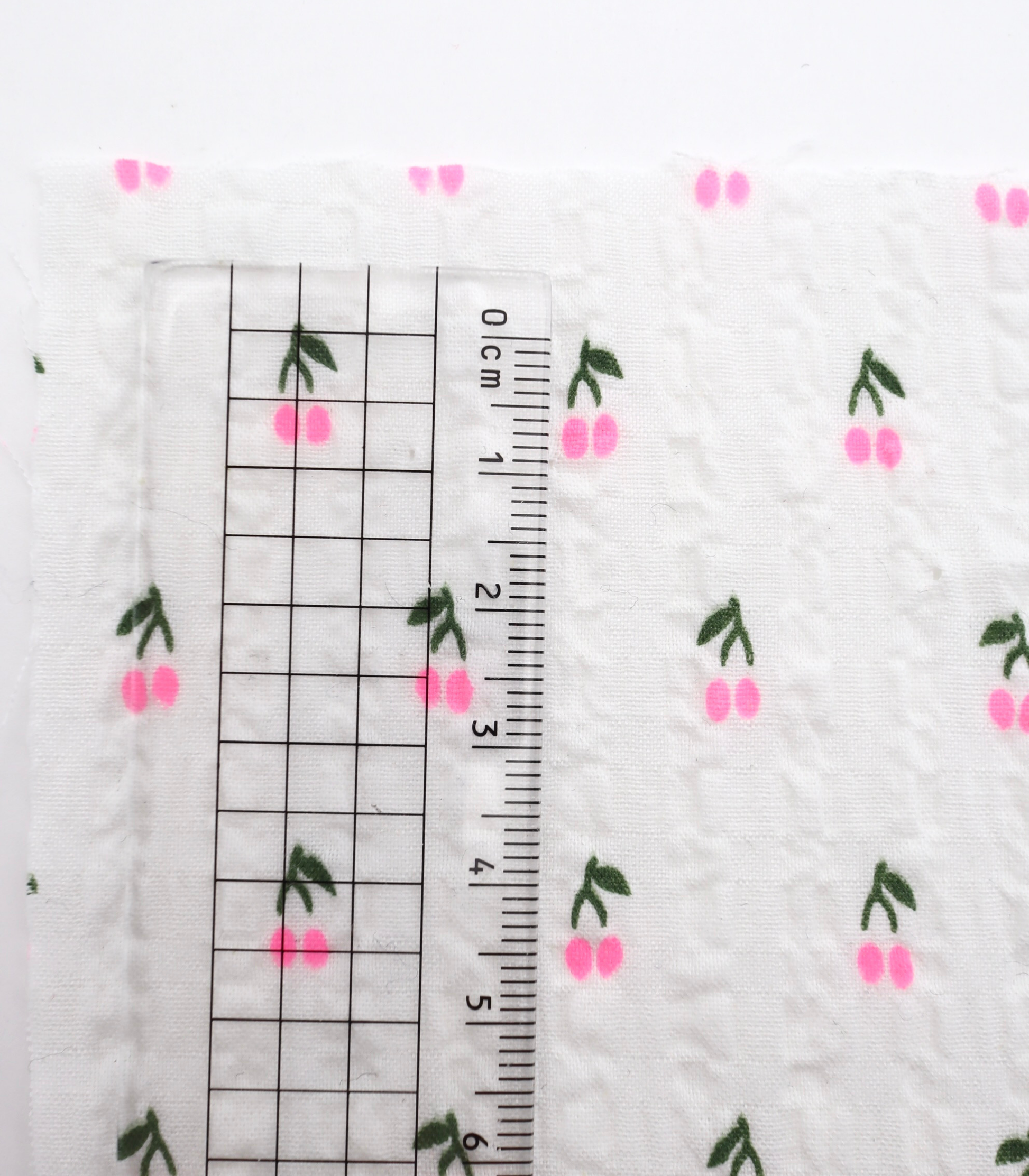 【25SS-435】蛍光チェリープリントサッカー /0.5yあたり=~ 630円
