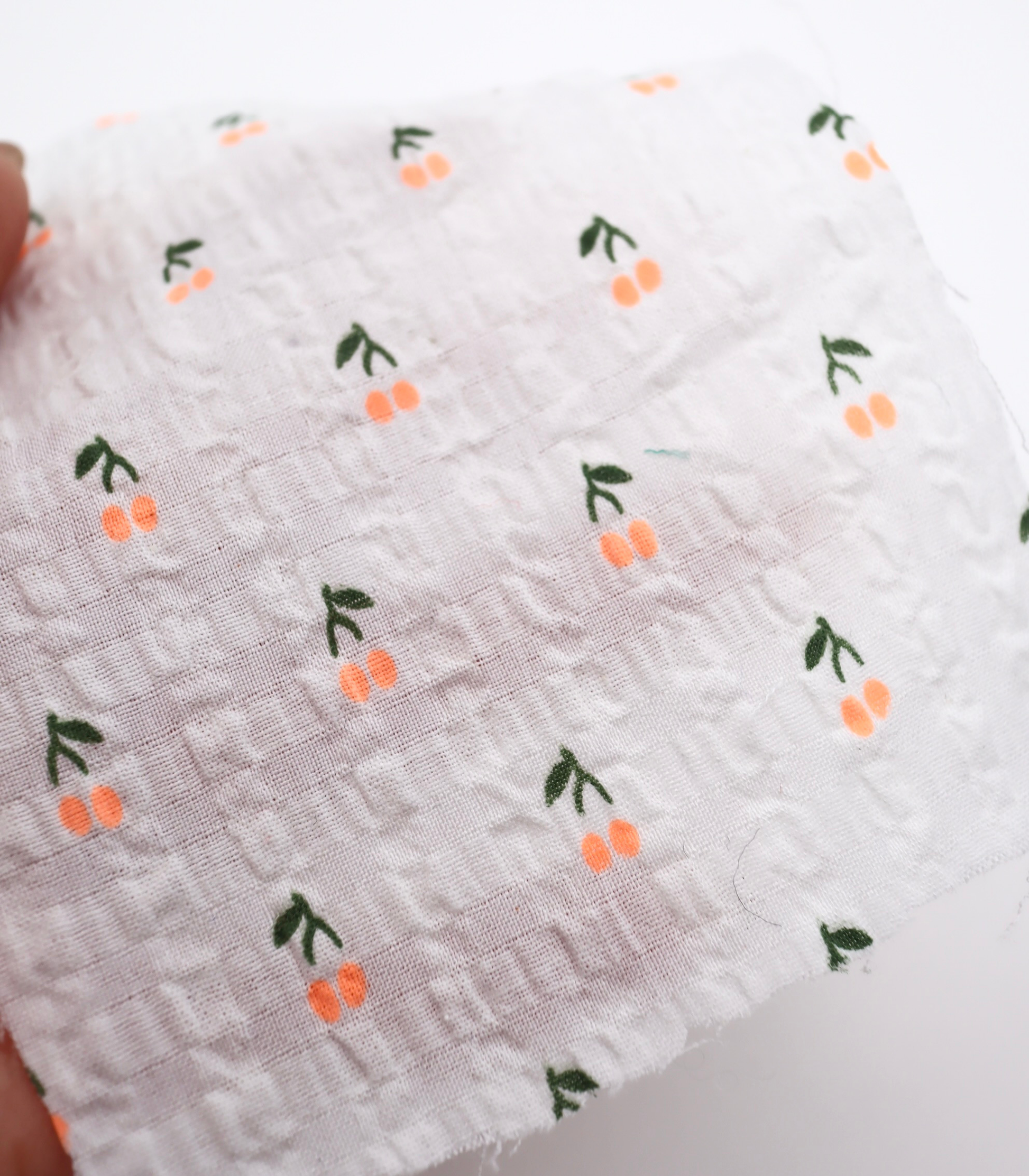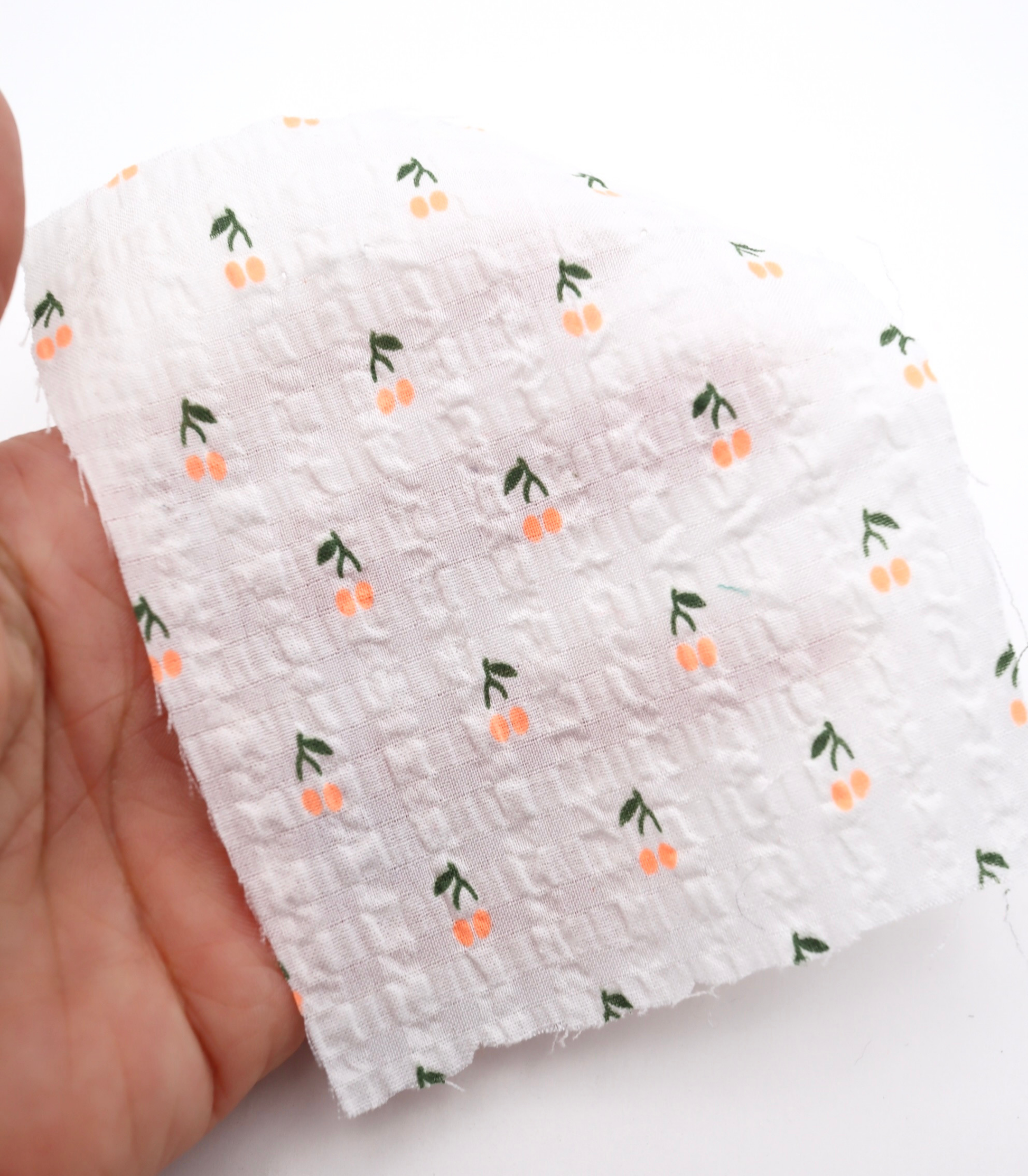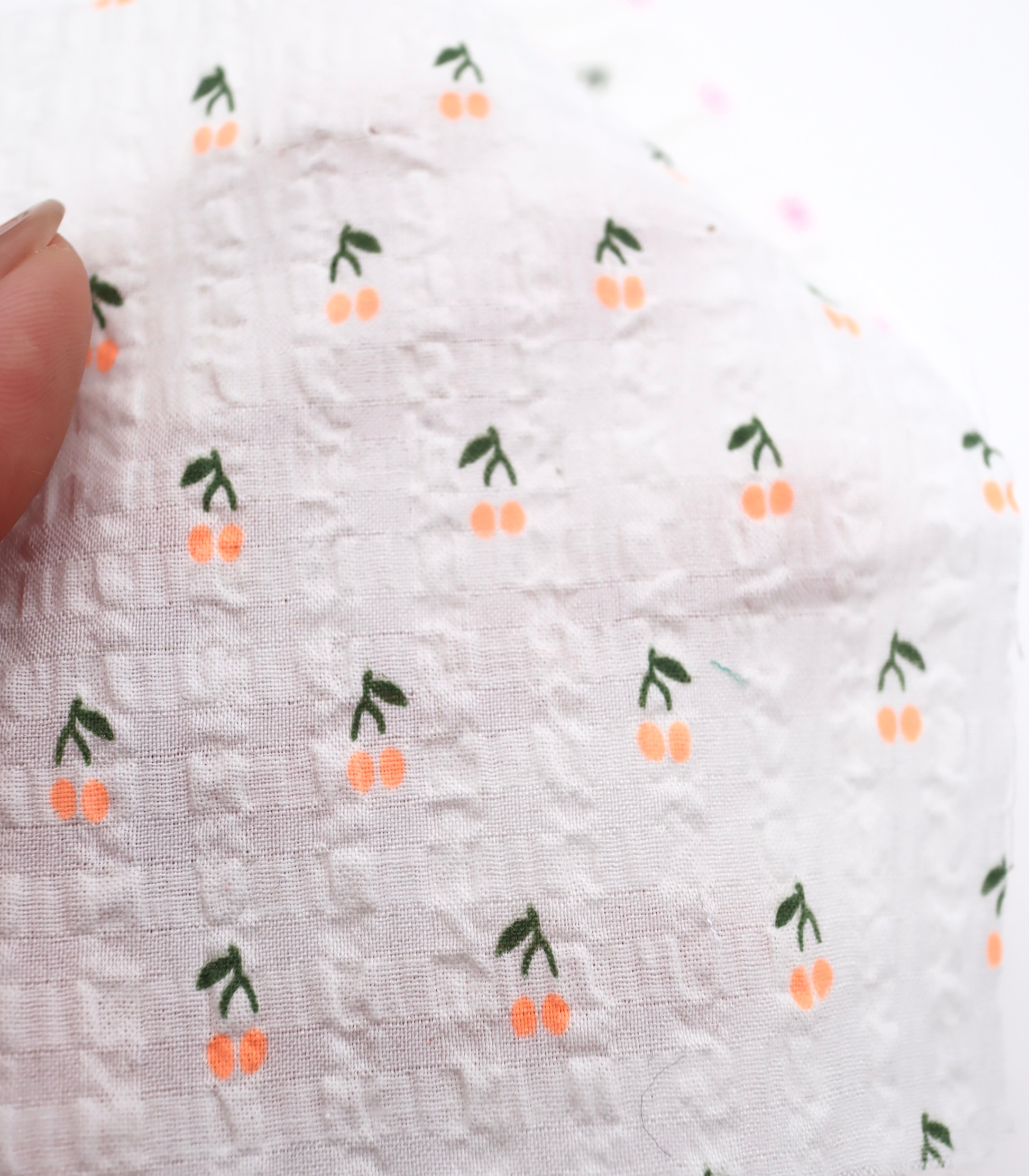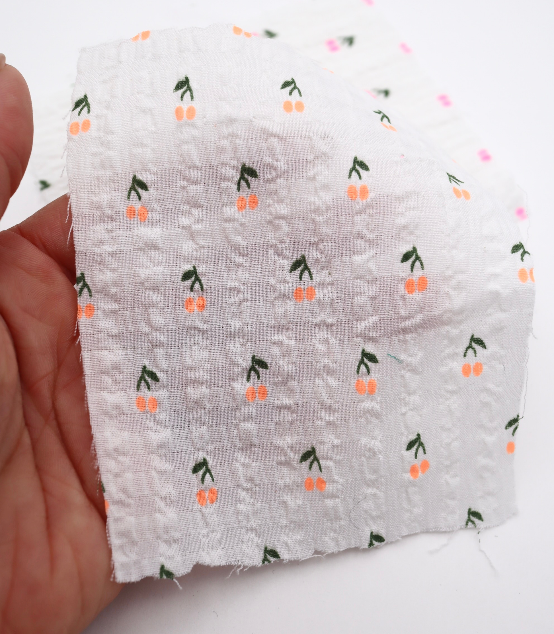 【25SS-435】蛍光チェリープリントサッカー /0.5yあたり=~ 630円