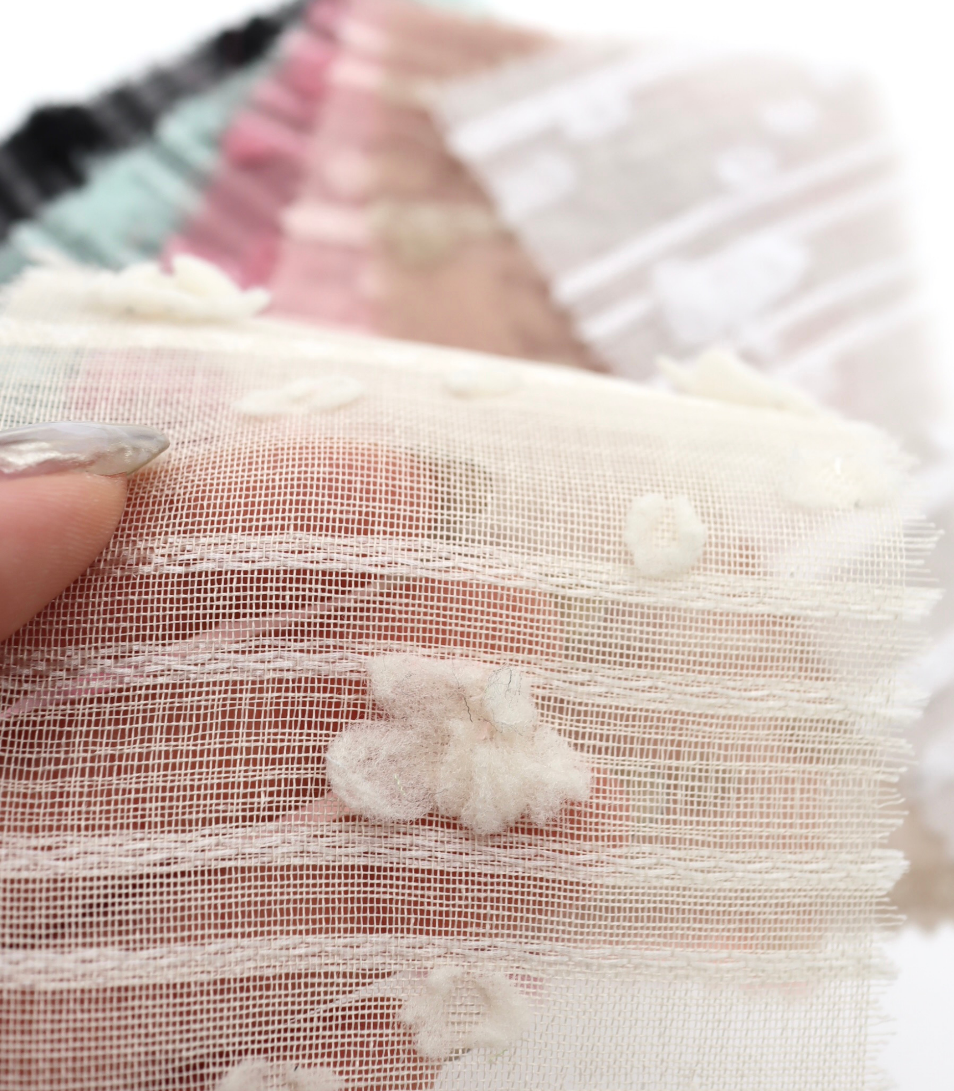 【25SS-371】もこもこフラワー×ボーダージャガードシアーローン /0.5yあたり = ~580円