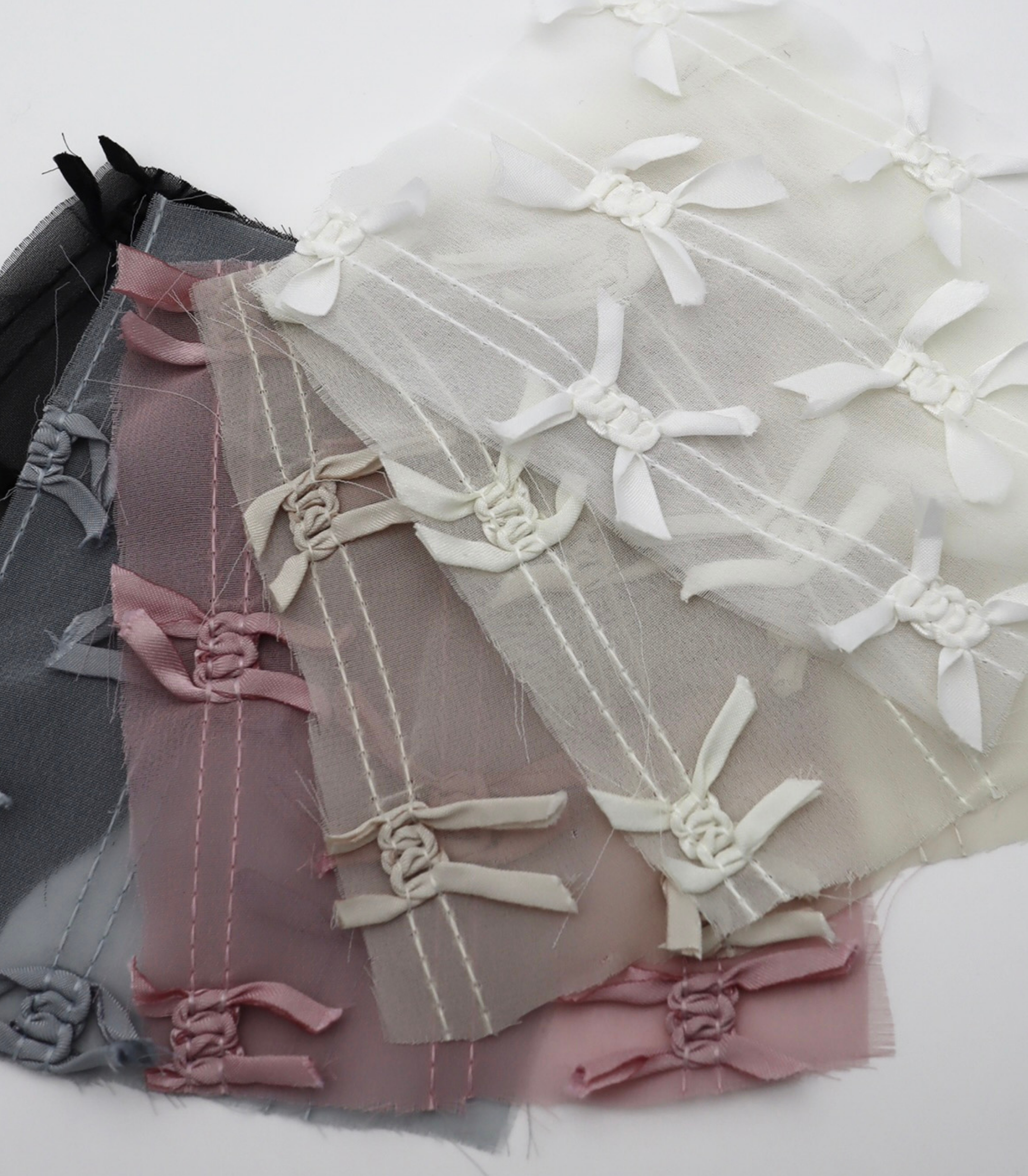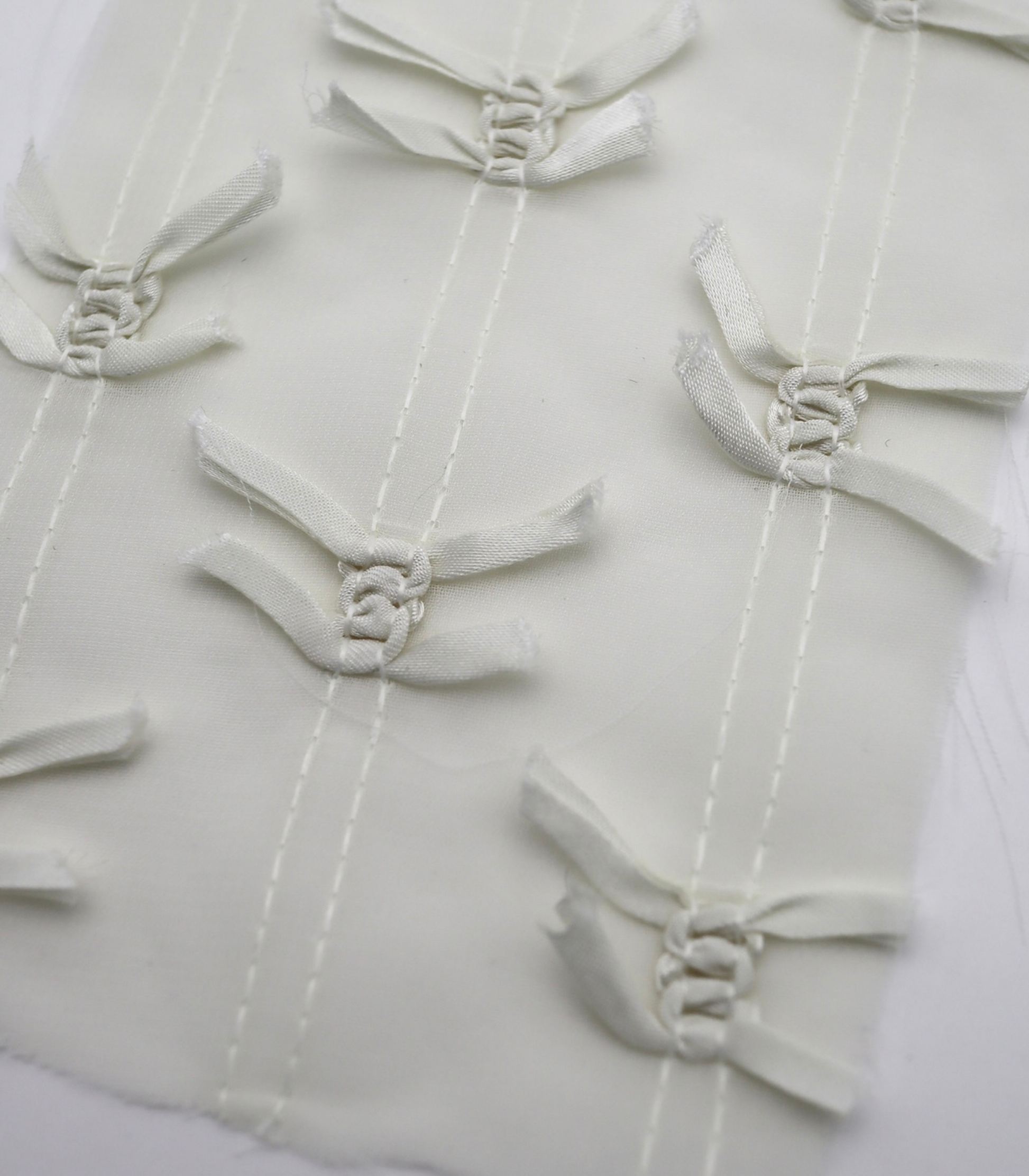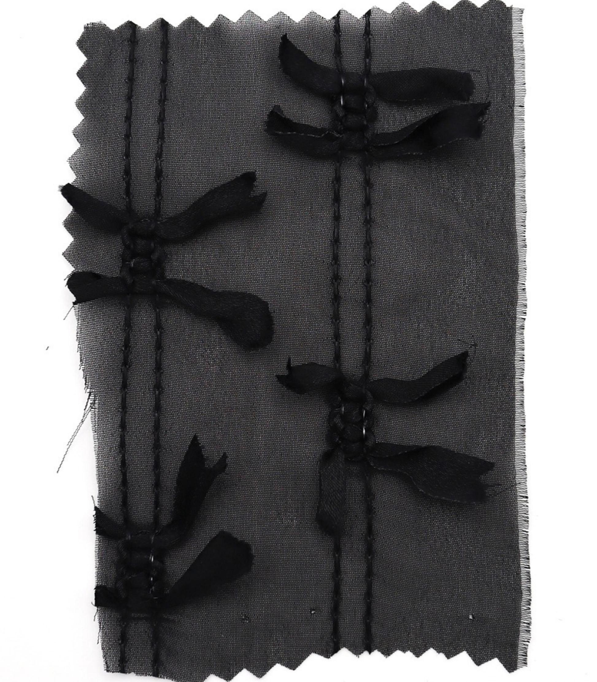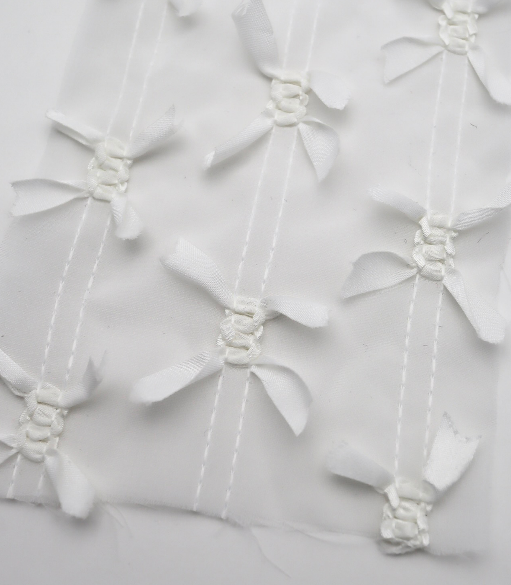 【25SS-143】サテンリボン付きストライプステッチシフォン /0.5yあたり = ~1020円