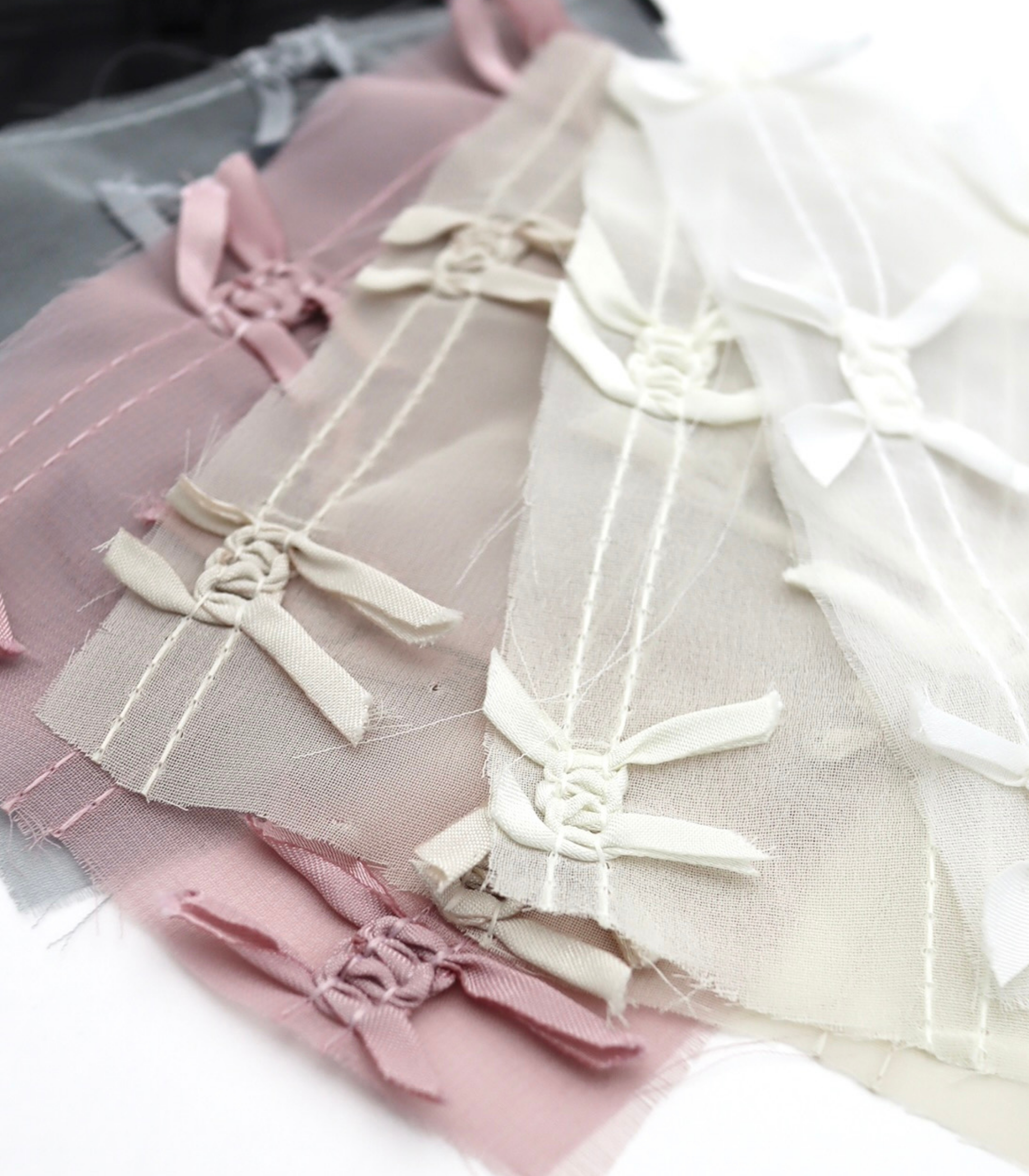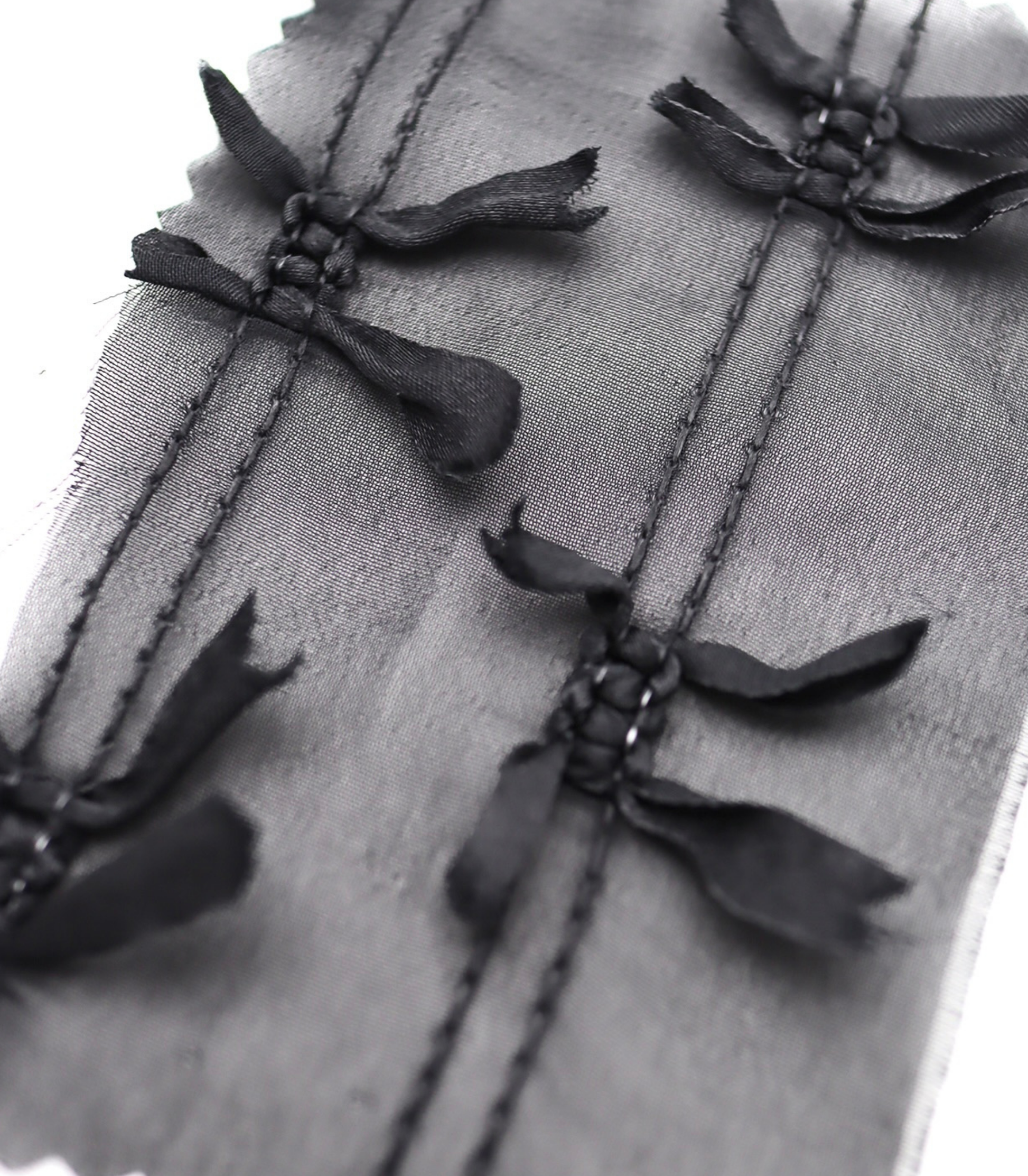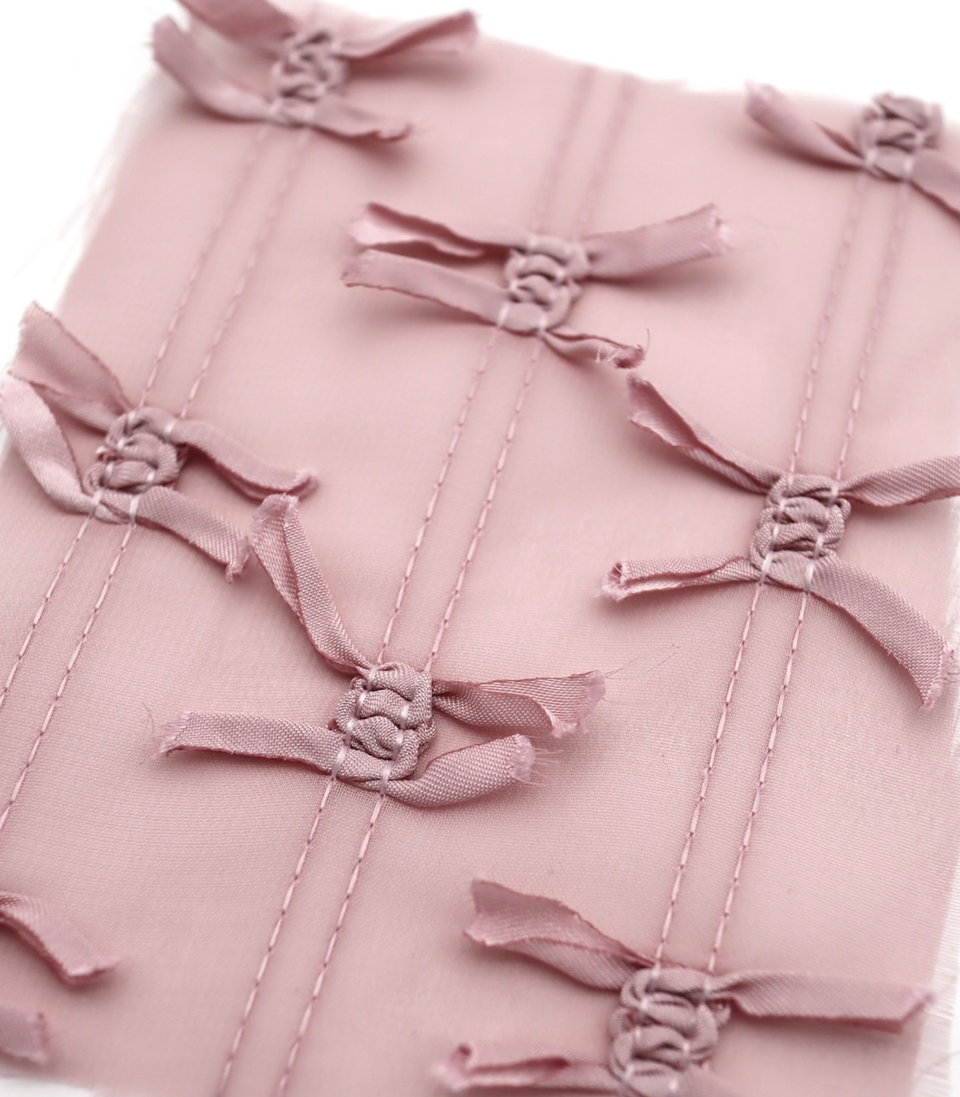 【25SS-143】サテンリボン付きストライプステッチシフォン /0.5yあたり = ~1020円