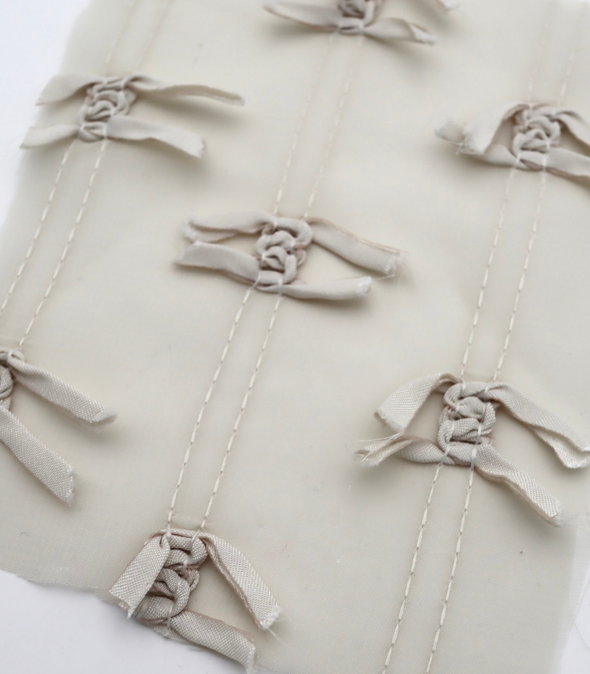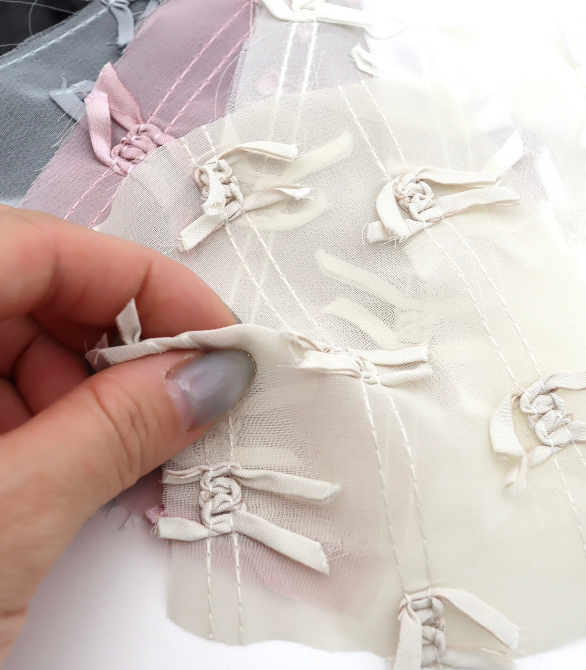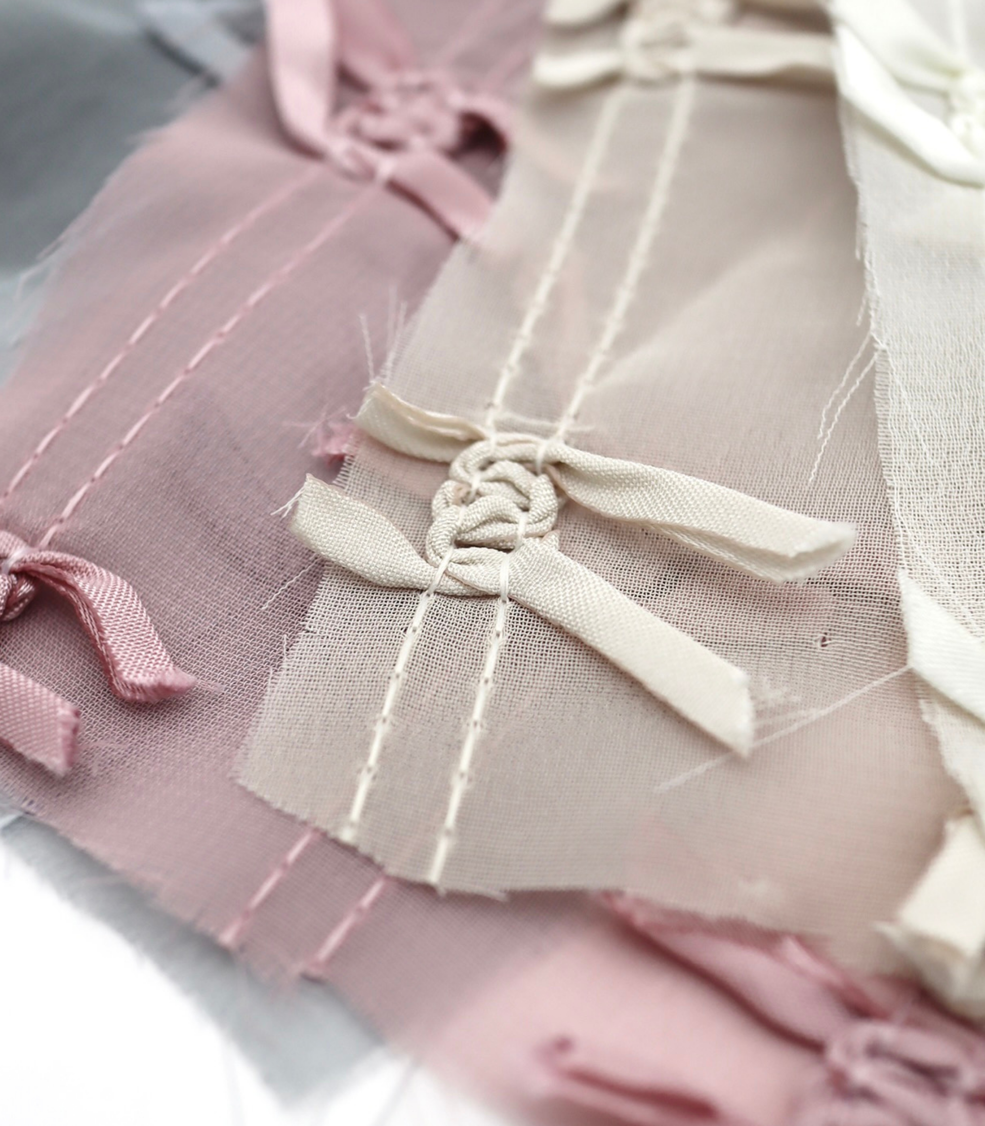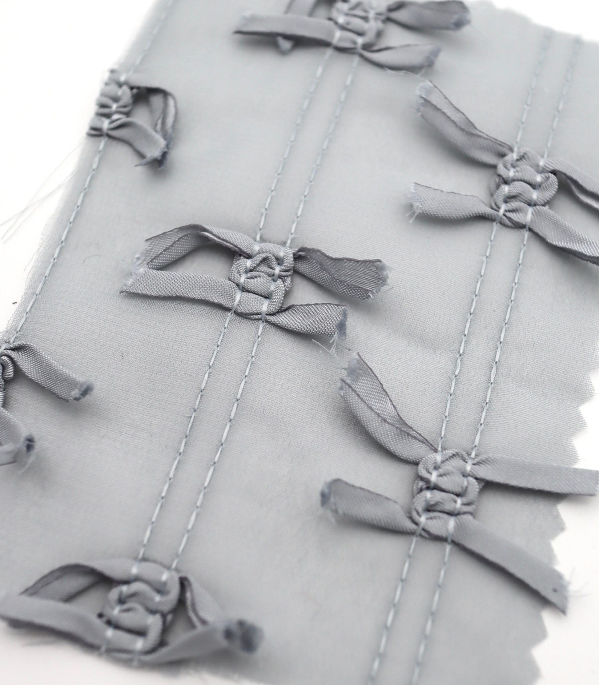 【25SS-143】サテンリボン付きストライプステッチシフォン /0.5yあたり = ~1020円