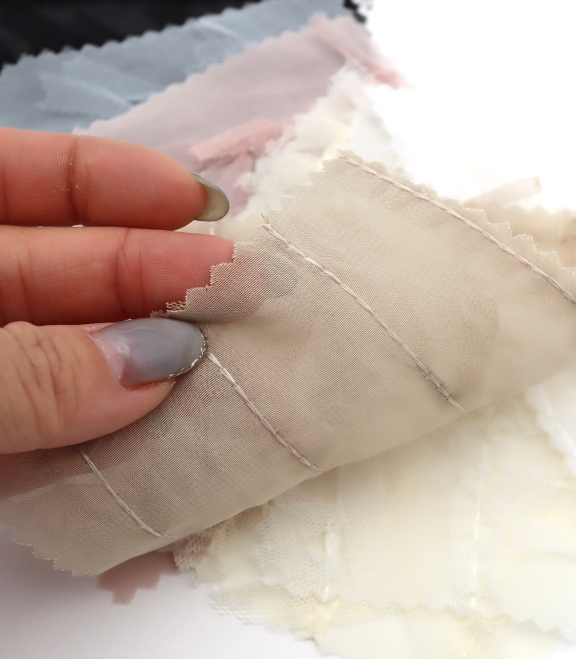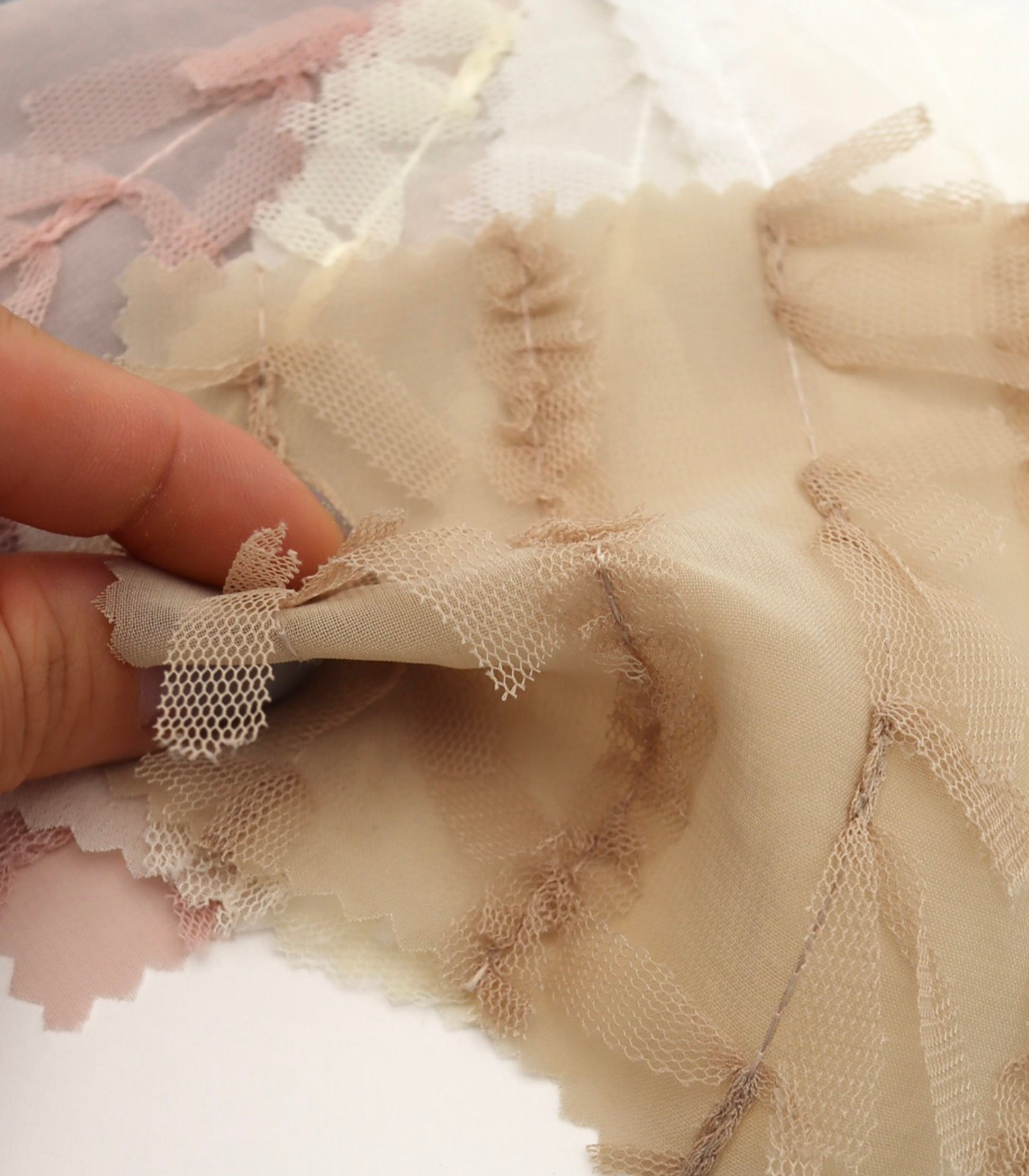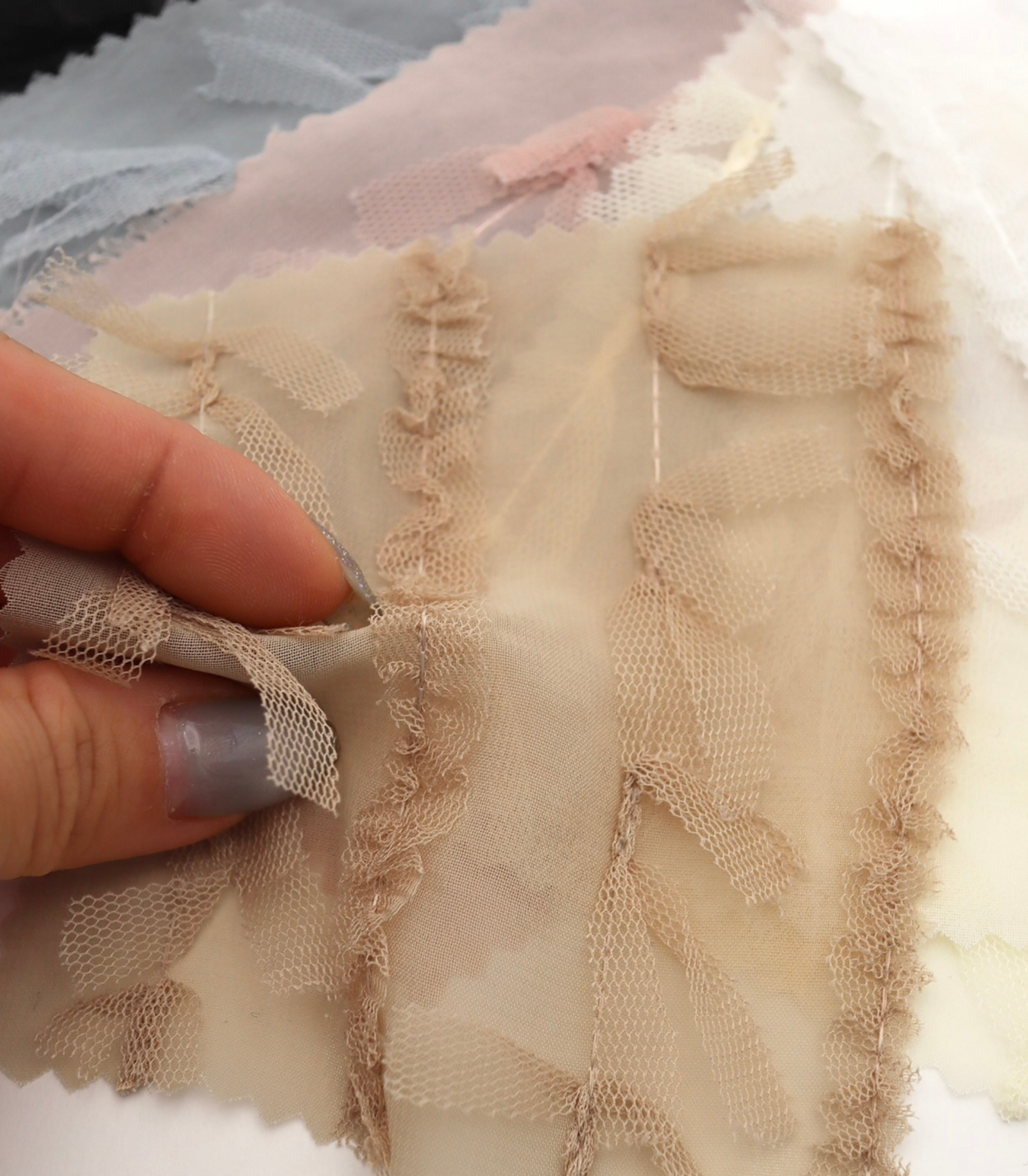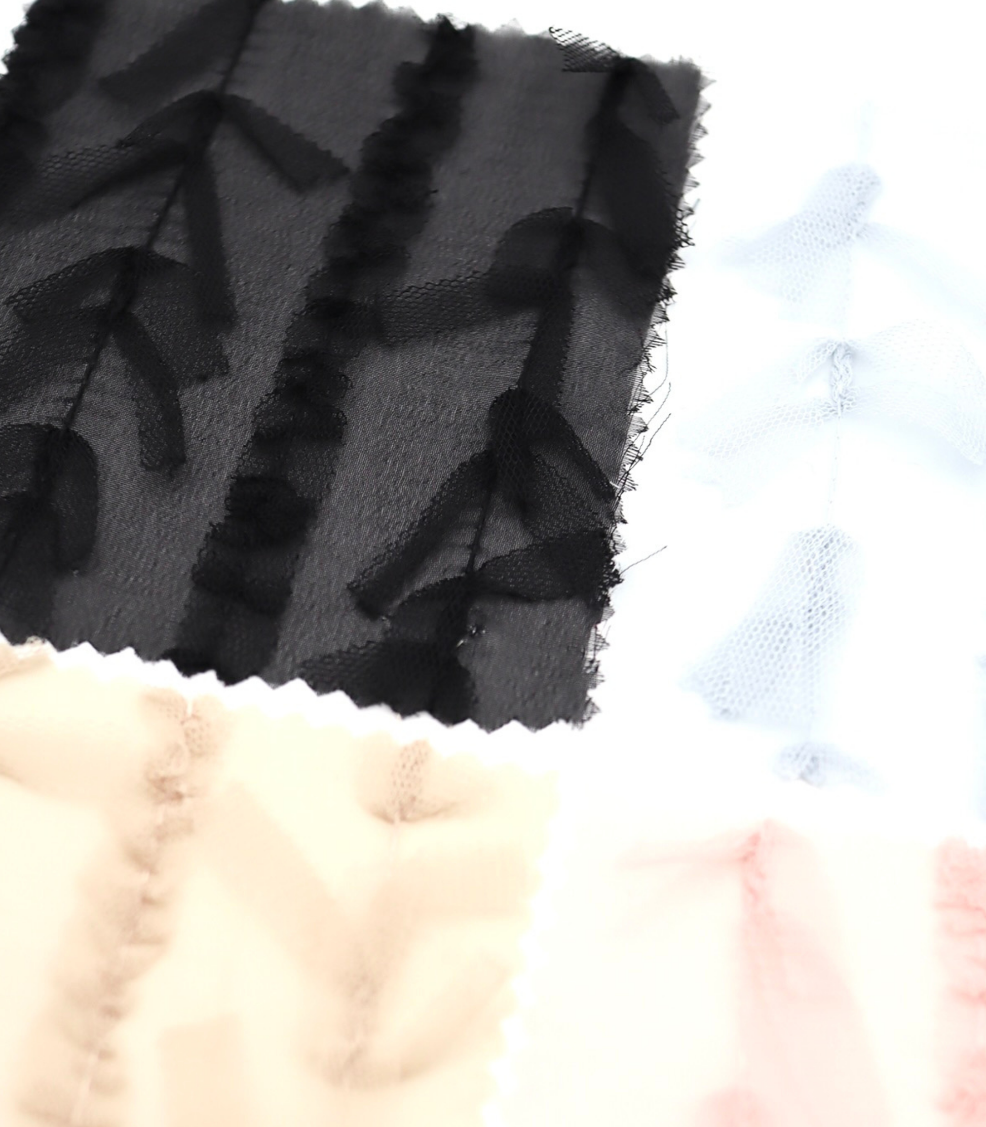 【25SS-063】チュールフリル×チュールリボン付きシフォン /0.5yあたり = ~ 915円